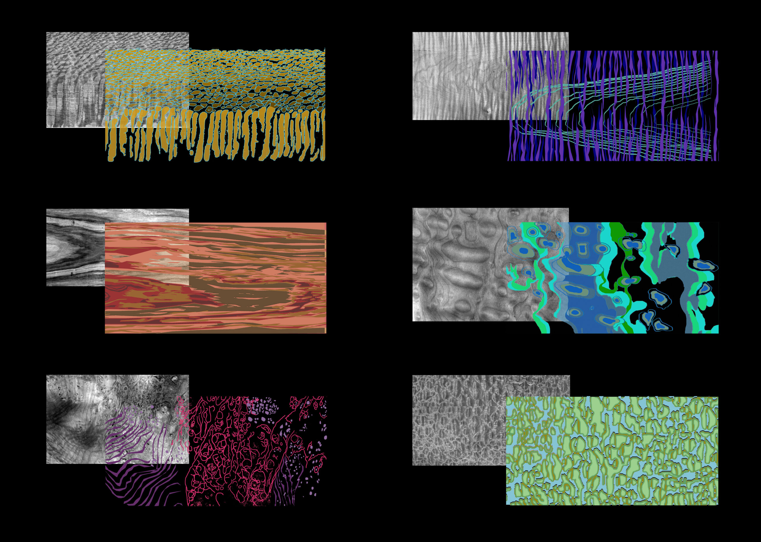 VENEERS Intro Panel Part I. Tree images and their original and reimagined veneers